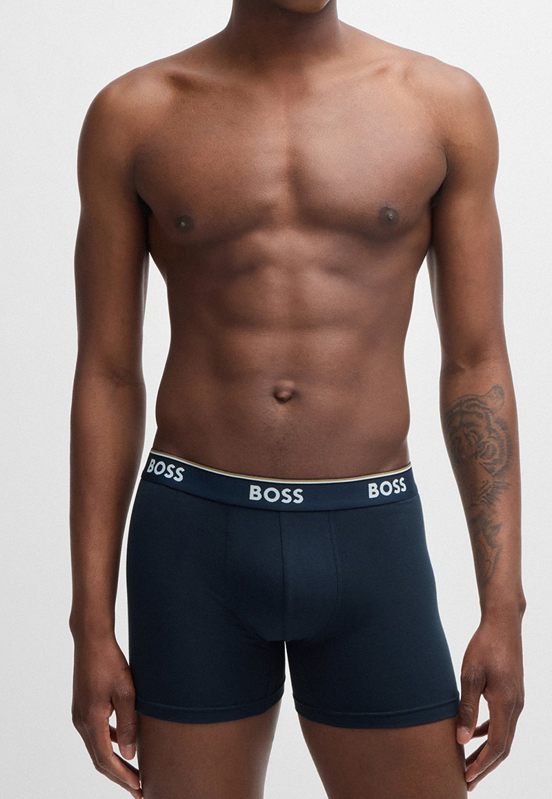 Een multipack power boxershorts van Boss. Deze nette basic afgewerkt met merklogo in de tailleband en een kermerkende streep rond ieder item.