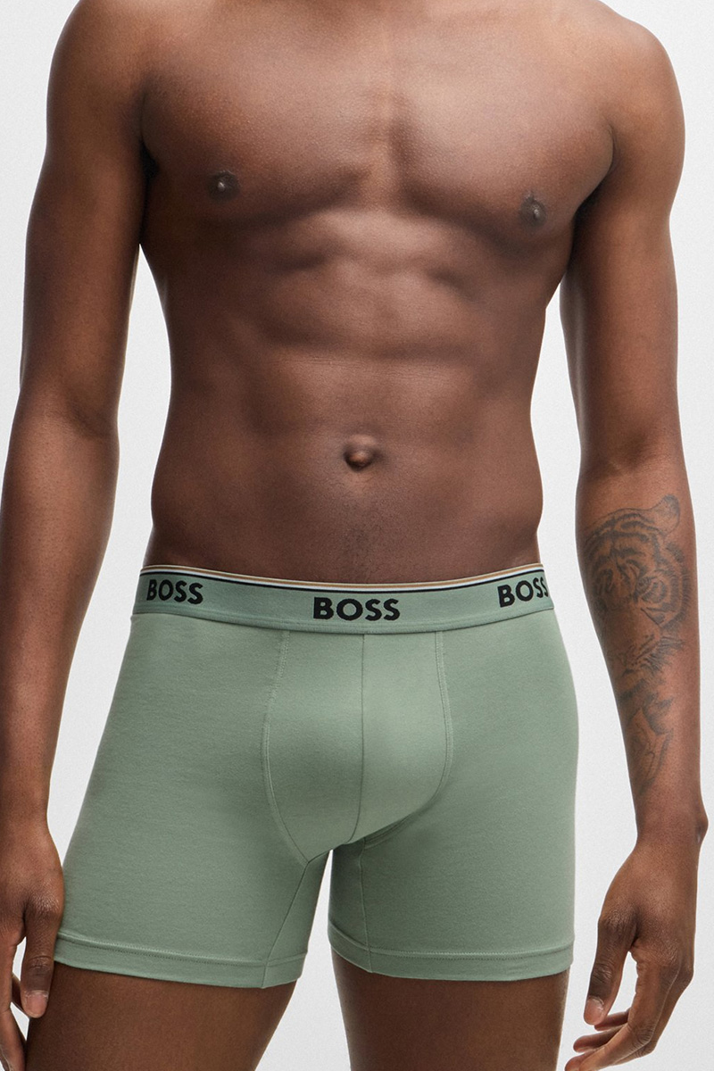3-pack boxershorts model boxerbrief van BOSS, uitgevoerd in effen varianten in het blauw, groen en zwart. Deze shorts hebben een reguliere hoogte en zijn afgewerkt met een extra zachte, elastische logo tailleband voor optimaal draagcomfort. Dankzij de hoogwaardige stofsamenstelling bieden deze boxershorts een perfecte pasvorm en behouden ze hun vorm na elke wasbeurt. Ideaal voor dagelijks gebruik en een stijlvolle aanvulling op je garderobe.